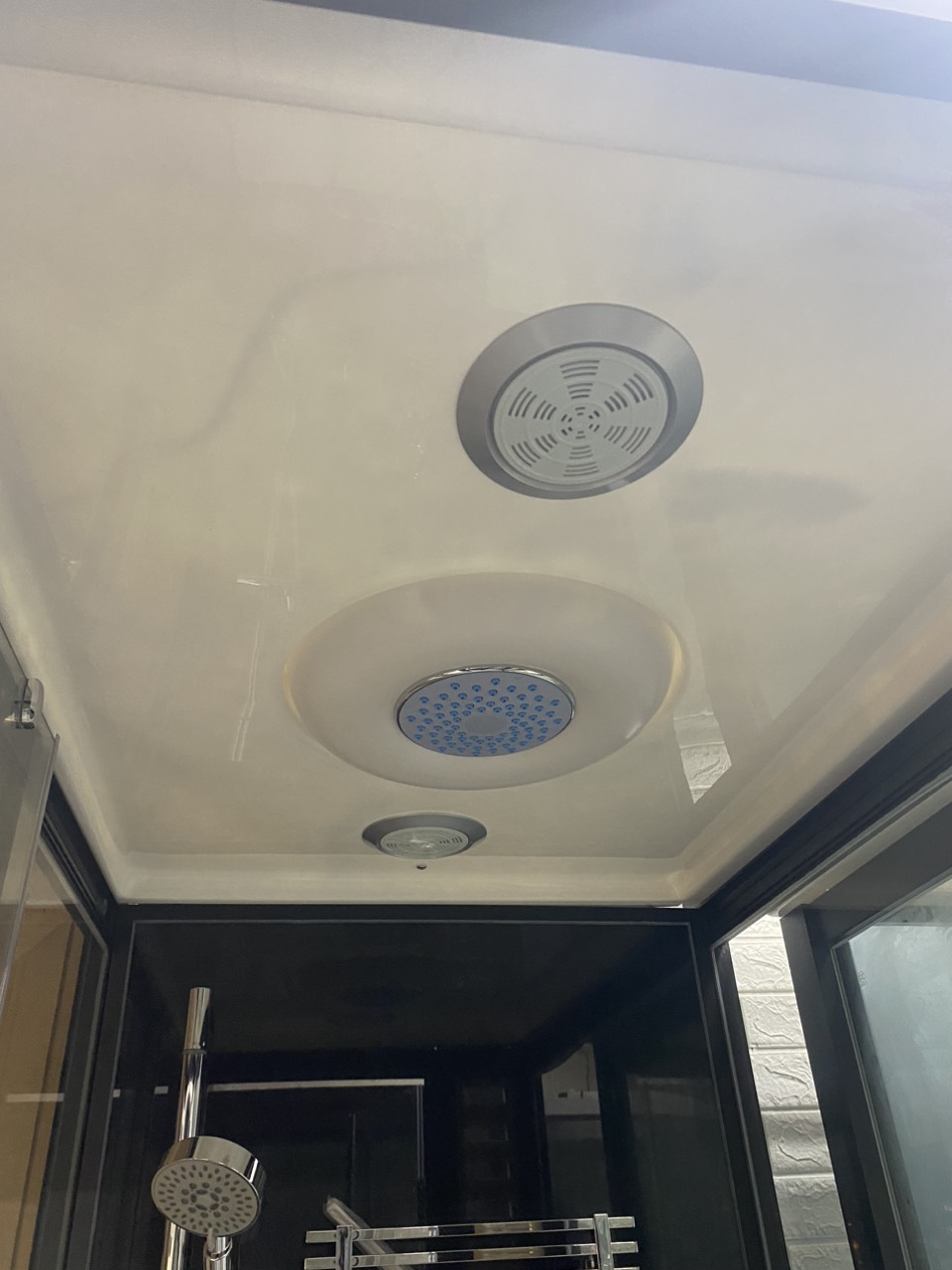 - Bên trong, phòng xông hơi ướt có hệ thống massage, ghế ngồi và kệ để đồ được thiết kế liền vào vách phòng xông hơi nhằm giảm tối đa diện tích phòng. Sen tắm áp trần được sử dụng nhằm mục đích tối ưu hóa cho không gian phòng tắm và mang đến cho người sử dụng trải nghiệm rất thú vị, thoải mái xoay chuyển cơ thể khi tắm mà không lo vướng víu. Sen tay được làm từ chất liệu inox cao cấp lắp đặt ở vị trí hợp lý và phù hợp toát lên vẻ sang trọng và hiện đại cho phòng xông hơi ROHLER PXH – 113. Đồng thời, phòng xông hơi của ROHLER PXH – 113 không thể thiếu hệ thống đèn LED và bảng điều khiển điện tử thông minh được thiết kế nhỏ gọn, những thao tác sẽ trở nên đơn giản với những phím chạm dễ hiểu.