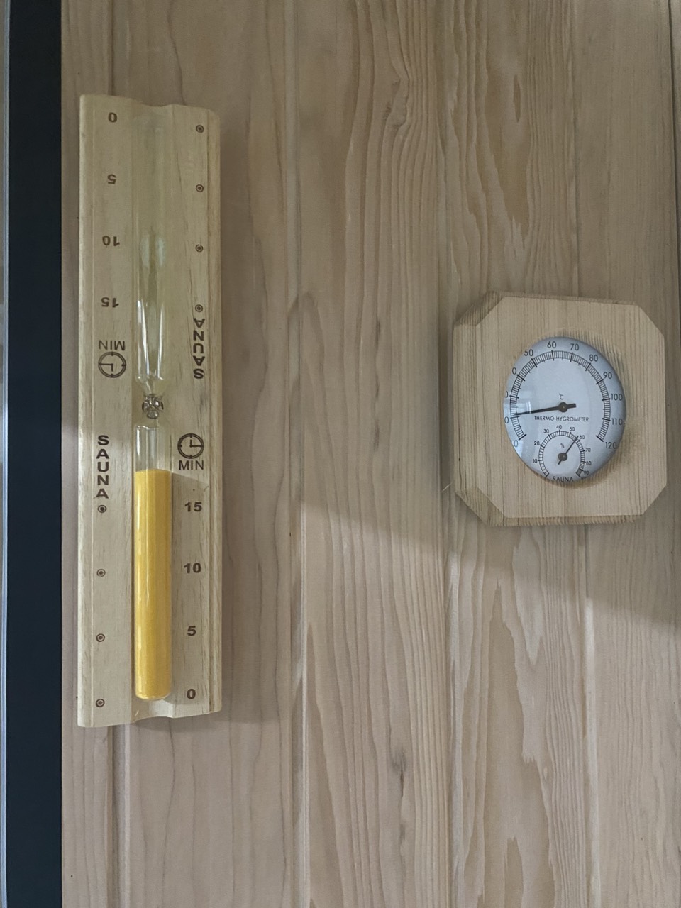 - Nhiệt kế dùng để đo nhiệt độ trong phòng có mặt trước là kính cường lực chịu được nhiệt độ cao, tránh nứt vỡ, đồng hồ cát giúp bạn căn chỉnh được thời gian xông hơi và không thể thiếu hệ thống đèn LED đa sắc màu.