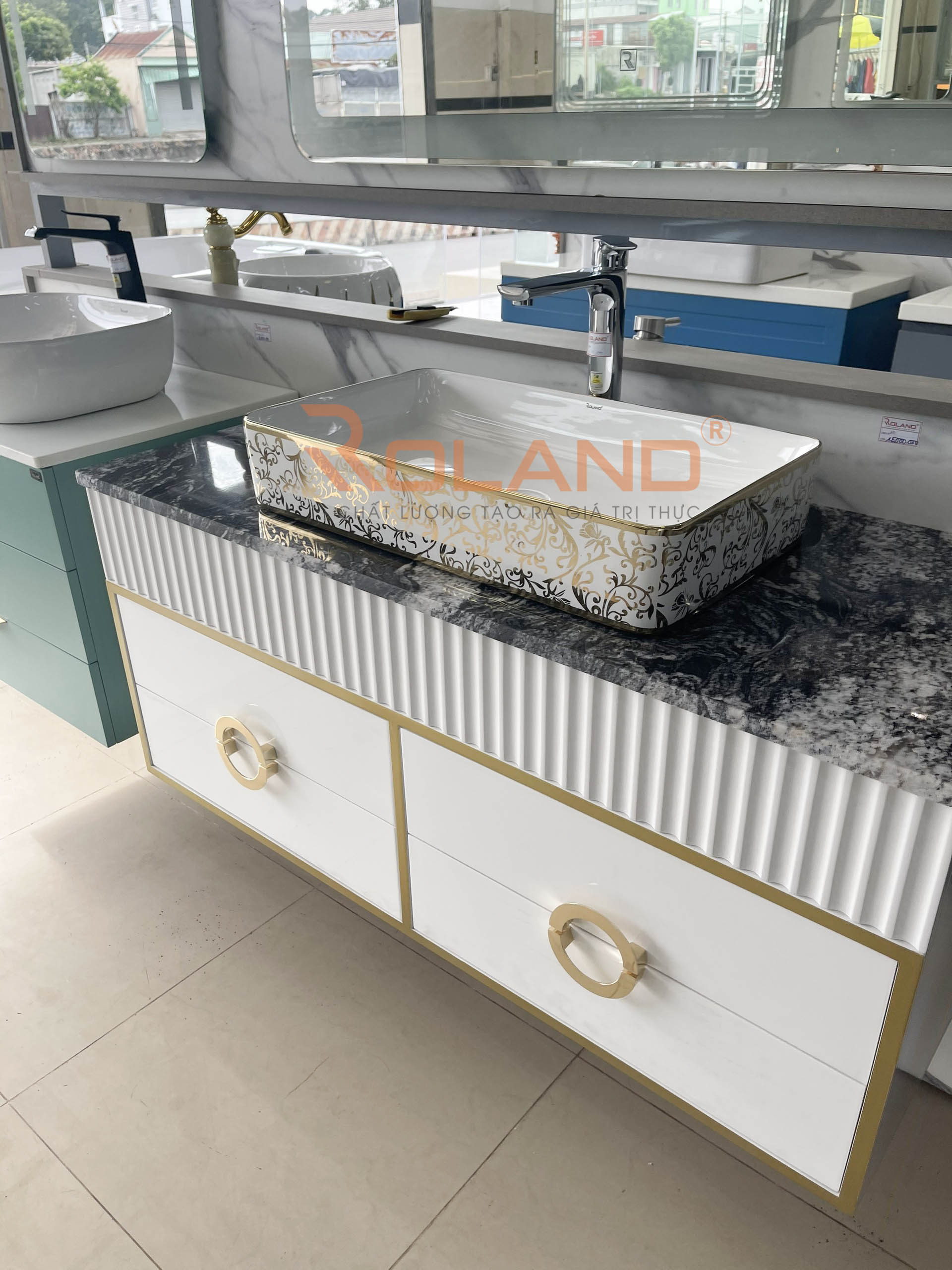Với sự kết hợp 4 trong 1 giữa tủ đựng đồ, chậu rửa, mặt đá và gương tạo nên Tủ Lavabo nhựa PVC Roland LB 102 vừa tiện dụng vừa tiết kiệm diện tích mà còn tăng tính thẩm mỹ cho căn phòng. Bộ tủ lavabo ROLAND là sự lựa chọn lý tưởng cho không gian phòng tắm cho gia đình bạn