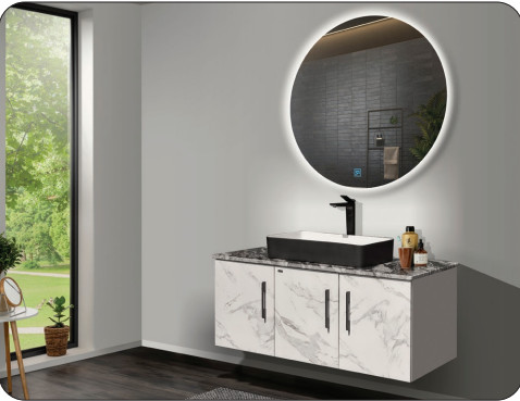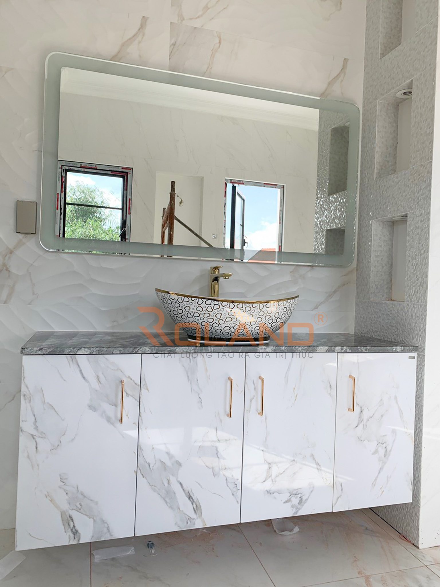 Tủ Lavabo nhựa PVC Roland LB 109 với màu sắc sang trọng, cùng với thiết kế bo viền tạo nên nét độc đáo cho không gian phòng tắm. Tủ gồm 4 bộ phận chính: Tủ nhựa, chậu rửa, mặt đá hoa cương và gương LED.
