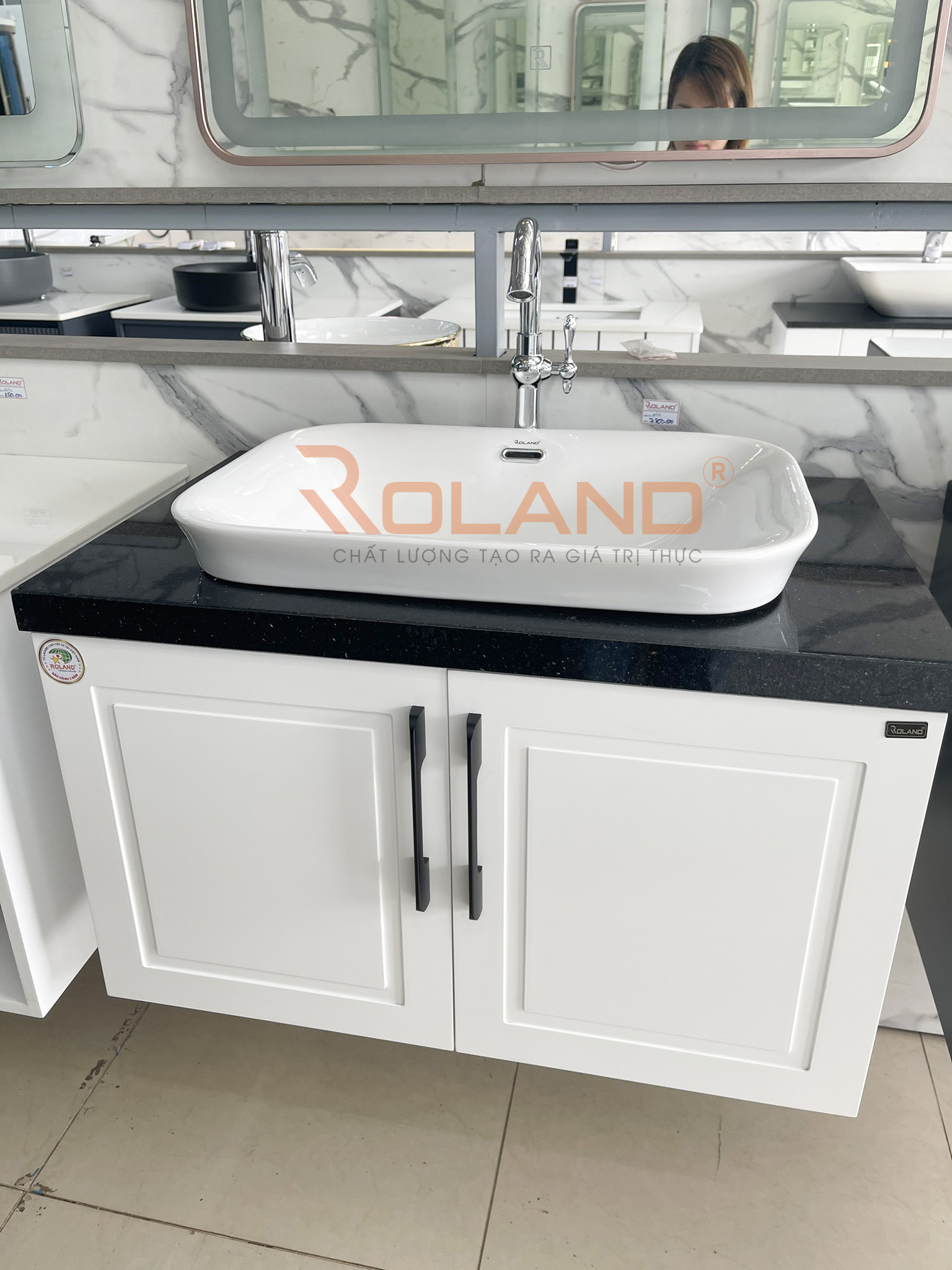 Với sự kết hợp 4 trong 1 giữa tủ đựng đồ, chậu rửa, mặt đá và gương tạo nên Tủ Lavabo nhựa PVC Roland LB 41 vừa tiện dụng vừa tiết kiệm diện tích mà còn tăng tính thẩm mỹ cho căn phòng. Bộ tủ lavabo ROLAND là sự lựa chọn lý tưởng cho không gian phòng tắm cho gia đình bạn