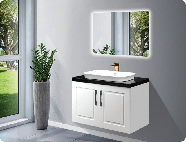 Tủ Lavabo nhựa PVC Roland LB 41 với màu trắng sang trọng, cùng với thiết kế bo viền tạo nên nét độc đáo cho không gian phòng tắm. Tủ gồm 4 bộ phận chính: Tủ nhựa, chậu rửa, mặt đá hoa cương và gương LED.