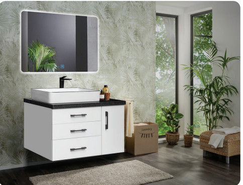 Tủ Lavabo nhựa PVC Roland LB 84 với màu sắc sang trọng, cùng với thiết kế bo viền tạo nên nét độc đáo cho không gian phòng tắm. Tủ gồm 4 bộ phận chính: Tủ nhựa, chậu rửa, mặt đá hoa cương và gương LED.