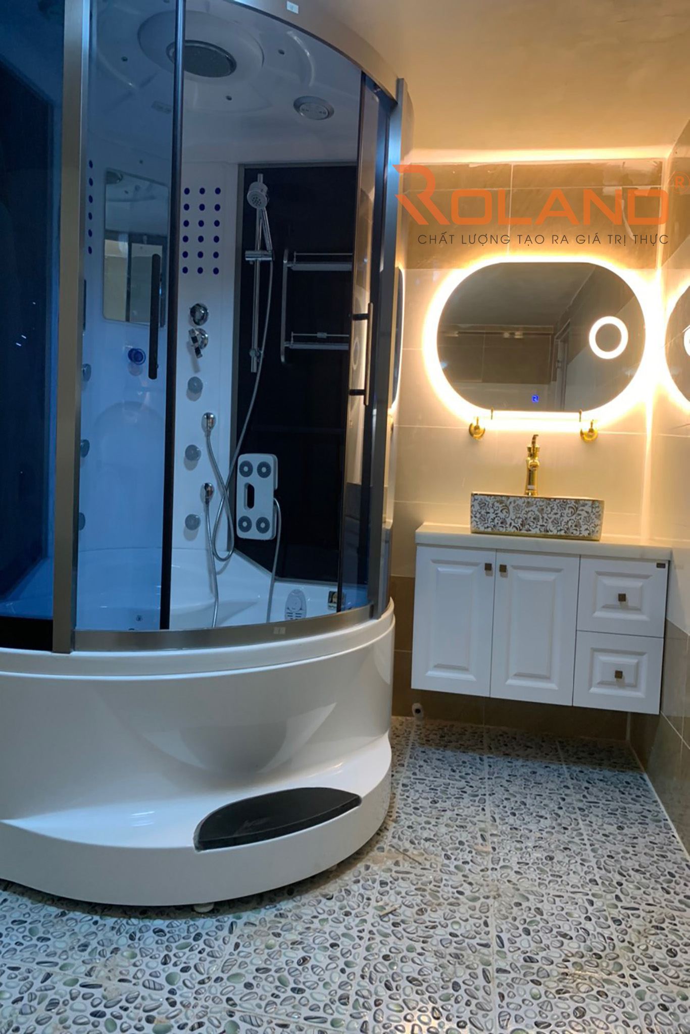 Tủ Lavabo nhựa PVC Roland LB 87 với màu sắc sang trọng, cùng với thiết kế bo viền tạo nên nét độc đáo cho không gian phòng tắm. Tủ gồm 4 bộ phận chính: Tủ nhựa, chậu rửa, mặt đá hoa cương và gương LED.