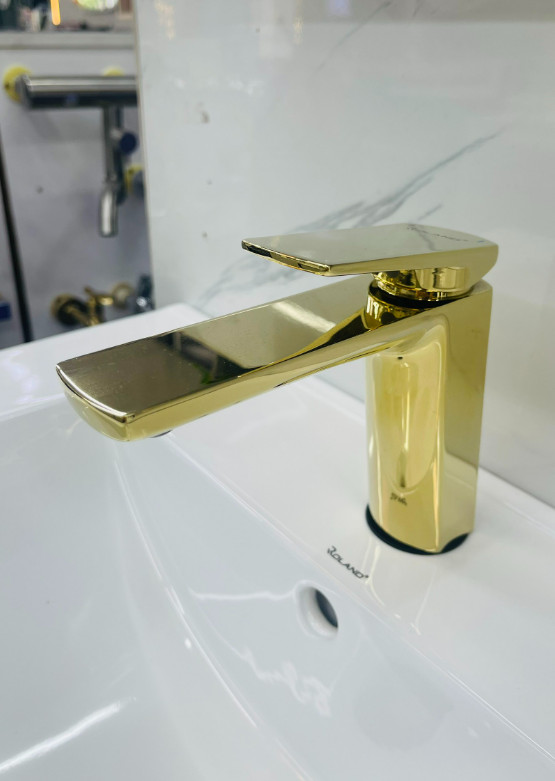Vòi Lavabo Nóng Lạnh Đồng Mạ Vàng