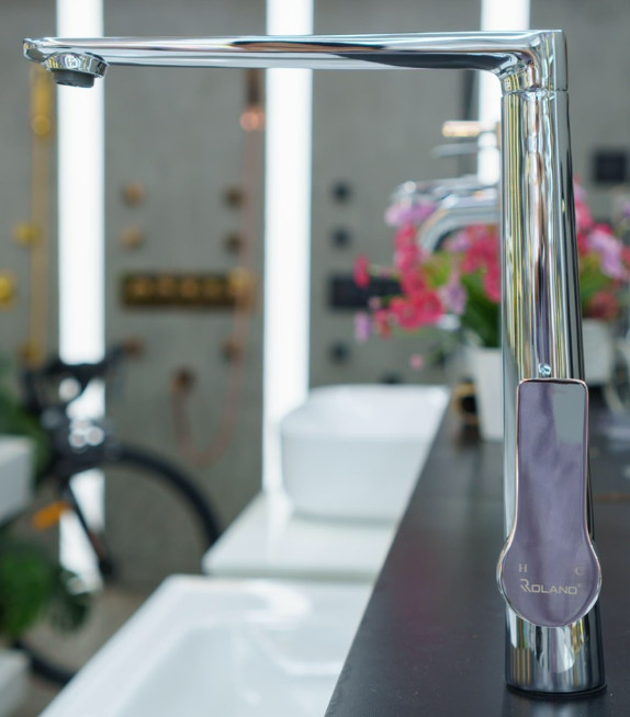 - Nhờ lối thiết kế độc đáo tạo điểm nhấn cho sản phẩm mà vòi rửa chén nóng lạnh roland có thể lắp được nhiều không gian bếp khác nhau.
